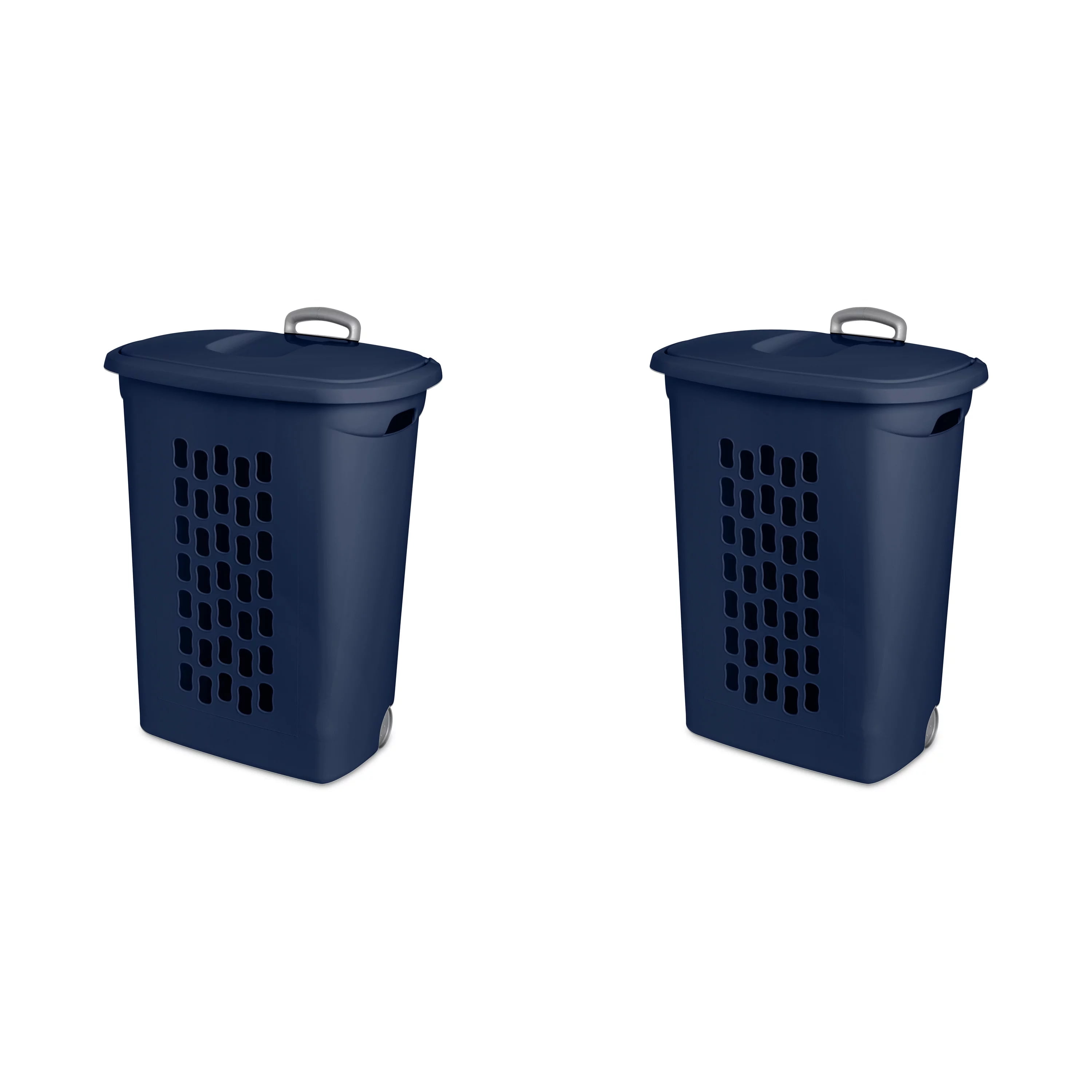 Wheeled Laundry Hamper Plastic With Lid And Retractable Handle Ventilated Design Navy Blue Set Of 2 Walmart Com